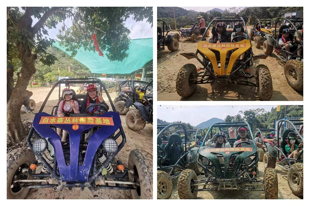 上午10:00我們先前住《白水寨叢林探險(xiǎn)基地》體驗(yàn)《越野車》。提到 UTV(Utility Vehicles)全地形越野車,有沒(méi)有感覺(jué)到很刺激,越野車屬于半封閉式駕駛室(實(shí)際上就是一個(gè)類似賽車的防滾架),有方向盤(pán),后部有開(kāi)放式車箱,最初定位是以農(nóng)業(yè)和林業(yè)生產(chǎn)使用為主的工具車,為越野愛(ài)好者設(shè)計(jì)的UTV 在動(dòng)力和安全性上都有加強(qiáng),包括防滾架、賽車座椅、多點(diǎn)式安全帶等都是標(biāo)配。