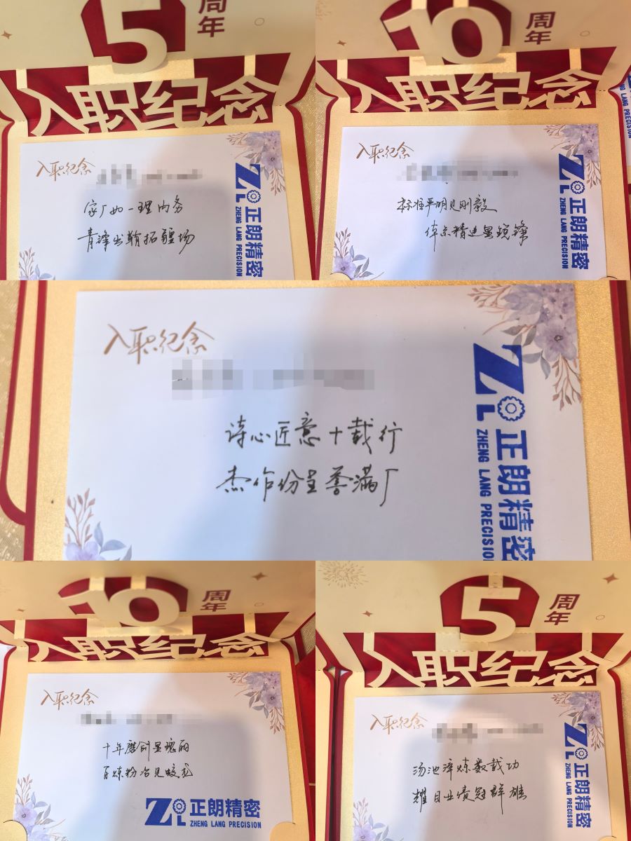 在11月22號這個美好的夜晚,正朗精密為管理團隊及家屬精心籌備了一場暖心家宴。華燈初上,餐廳內暖意融融,管理團隊與家屬們歡聚一堂,共享美味佳肴。席間,公司為每一位管理團隊成員頒發入職年份證書——那鐫刻著入職時間的證書,是歲月的見證,更是正朗對員工忠誠與付出的崇高敬意。